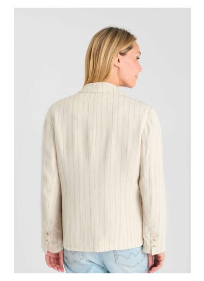 Col tailleur, coupe droite, fermeture boutonnée, manches longues avec poignets boutonnés, doublée, motif rayures. Type de veste : blazer. Marque : Le temps des cerises.