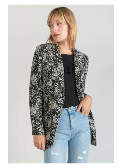 Col châle, coupe droite, fermeture boutonnée, manches longues, doublée, blazer à motif floral. Marque : Le temps des cerises.