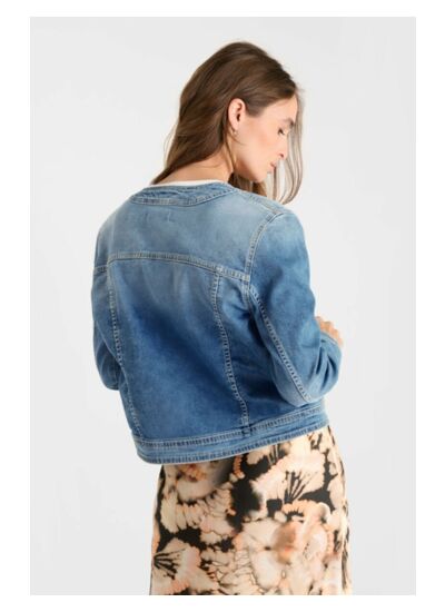 Col rond, coupe droite, fermeture boutonnée, manches longues avec poignets boutonnés. Veste en jean unie signée Le temps des cerises, conçue pour un porté confortable et un style intemporel.