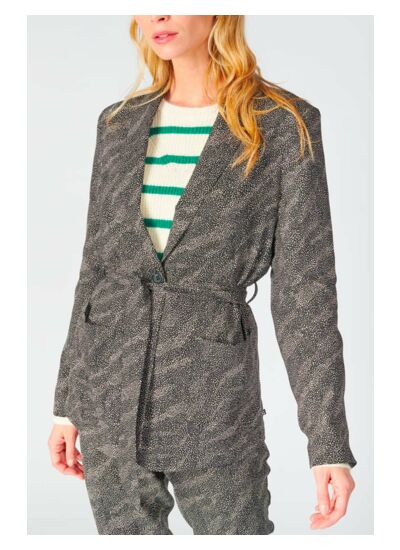 Col châle, coupe droite, fermeture boutonnée, manches longues, doublée. Type de veste : blazer. Motif : animalier. Marque : Le temps des cerises.