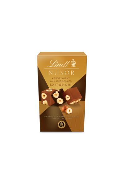 Découvrez la plus incroyable des expériences chocolatées Lindt aux noisettes ! NUXOR Lait et Noir, c’est une parfaite combinaison de textures grâce à des ingrédients de haute qualité : l’onctuosité d’un gianduja chocolat au lait et d'un chocolat noir et le croquant des délicates noisettes grillées, soigneusement sélectionnés par les Maîtres Chocolatiers Lindt. Une forme cubique unique, emballée délicatement dans un élégant papier doré, pour offrir ou pour se faire plaisir !