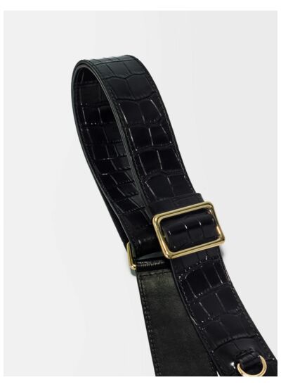 Quelle est la qualité du cuir utilisé pour la bandoulière ? La bandoulière est en cuir effet croco, un matériau choisi pour sa résistance et son aspect luxueux, garantissant durabilité et une touche mode distinctive.