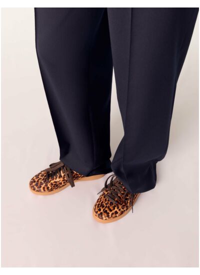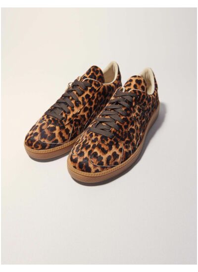L'imprimé léopard se réinvente sur les accessoires phares de la collection.Parfaite alliance entre élégance et décontraction, ces baskets lacées à semelle en gomme dévoilent un cuir effet pony.