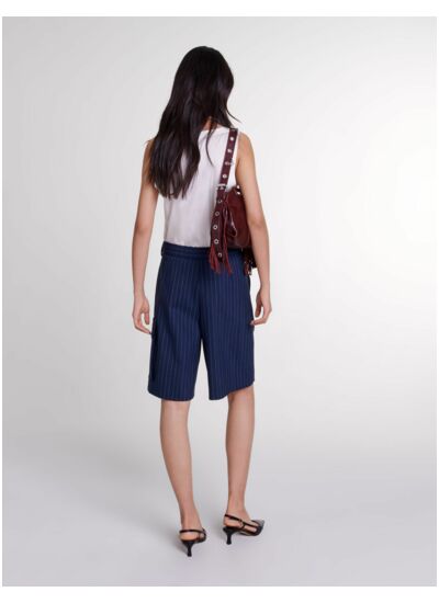 Elégant, ce bermuda orné de fines rayures et de plis pincés à l'avant se prête à tous les styles et s'accessoirise à volonté. Muni d'une poche à rabat sur le côté, il dévoile une coupe large pour créer une silhouette structurée et élancée.