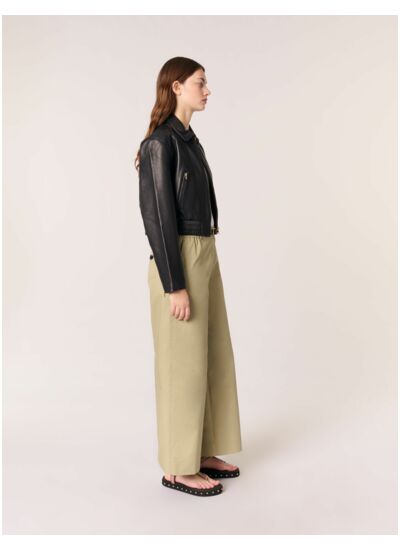 - Blouson court en cuir lisse