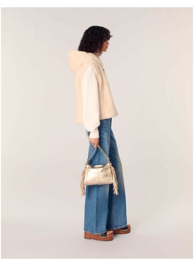 Jeu de contraste et double porté : ce blouson à capuche en fausse fourrure sera l'allié parfait de la saison. Muni de manches amovibles en maille côtelée ainsi que d'une fermeture à attaches et maillons, il multiplie les portés, des plus casual aux plus habillés.