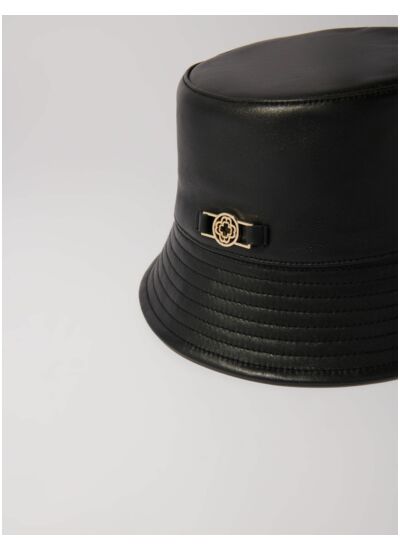 Twistez votre look de saison avec ce bob en cuir lisse muni d'une visière. Ornée d'une plaque métallique Clover à l'avant, il insuffle une touche d'éclat à vos tenues sophistiquées comme décontractées.