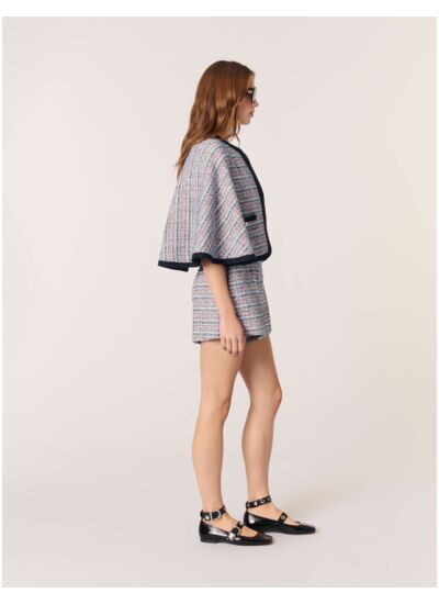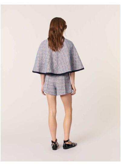 Quelles sont les caractéristiques principales de cette cape en tweed ? Cette cape Maje est conçue en tweed de qualité, offrant une texture élégante et une excellente tenue. Les galons contrastés apportent une touche graphique et moderne, soulignant la silhouette avec raffinement.