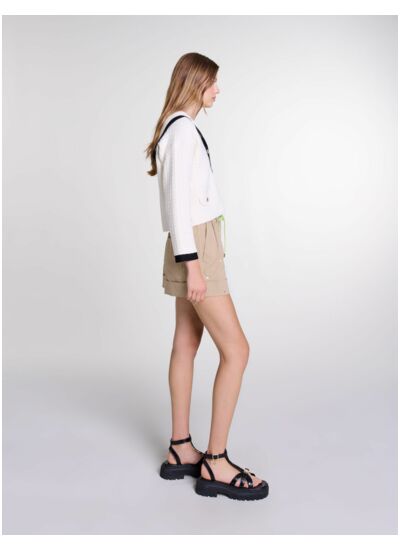 Ce cardigan Maje est-il adapté aux saisons intermédiaires ? Oui, sa matière légère et son col contrasté en font une pièce idéale pour le printemps et l’automne, offrant confort et style sans surchauffe. Comment entretenir ce cardigan pour préserver ses couleurs et sa forme ? Il est recommandé de suivre les instructions d’entretien sur l’étiquette, généralement un lavage à la main ou en cycle délicat, pour garantir la tenue des couleurs contrastées et la qualité du tissu. Ce modèle convient-il à un style formel ou décontracté ? Ce cardigan contrasté s’adapte parfaitement à un look casual chic, mais peut aussi compléter une tenue plus habillée en apportant une touche moderne et élégante. Quelle taille choisir pour un ajustement optimal ? Le cardigan Maje taille normalement ; pour un effet près du corps, prenez votre taille habituelle, sinon optez pour une taille au-dessus pour un porté plus ample. Ce vêtement est-il facile à associer avec d’autres pièces de la garde-robe ? Oui, son design épuré et le contraste du col permettent de le porter aussi bien avec un jean, une jupe ou un pantalon habillé, facilitant ainsi la création de multiples looks.