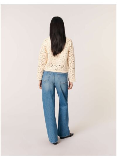 Elégant et intemporel, ce cardigan court en crochet, orné de fleurs délicates, crée un jeu subtil de transparence. Sa fermeture à boutons Clover et ses deux poches plaquées confèrent une allure impeccable.