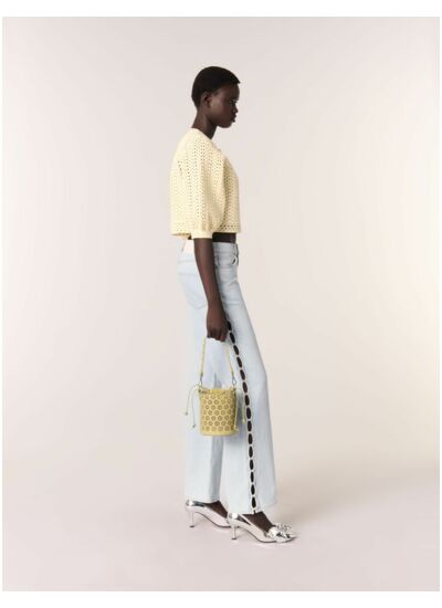 Comment entretenir ce cardigan en crochet strassé ? Pour préserver la qualité du crochet et l’éclat des strass, il est recommandé de le laver à la main à l’eau froide ou en cycle délicat, sans essorage intensif. Le séchage à plat évite toute déformation et garantit une tenue impeccable.