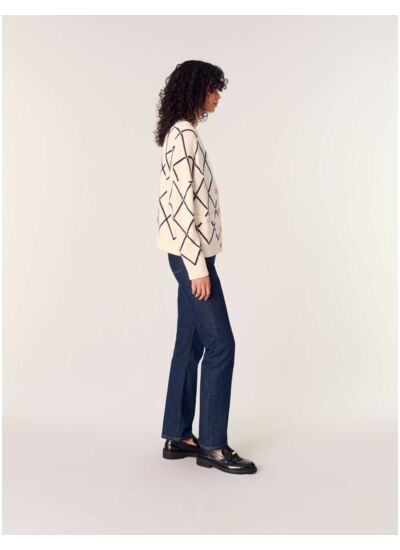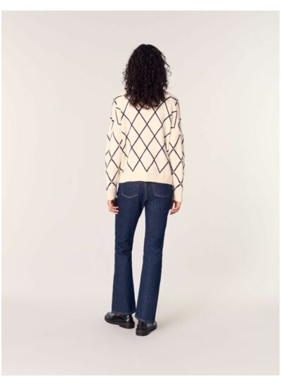 Cardigan droit en maille jacquard à motif losange. Manches longues et droites. Encolure V. Boutons en métal siglés Maje. Poches plaquées et rivets en métal Clover Maje.