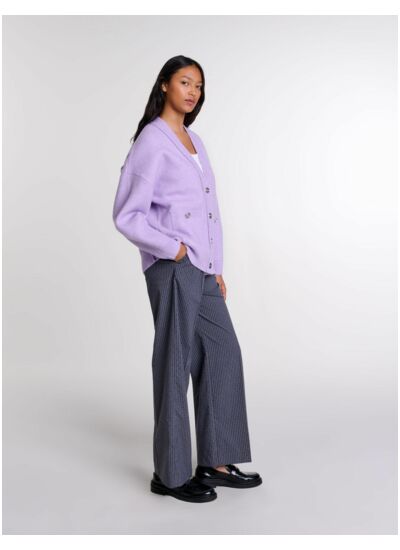 Une coupe oversize pour ce gilet doux et réconfortant confectionné à partir de laine. Muni d'un col V et de manches longues, il dévoile une fermeture et deux poches plaquées ornées de boutons travaillés. Le détail chic ? Une signature embossée Maje se dévoile à la poitrine.