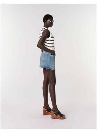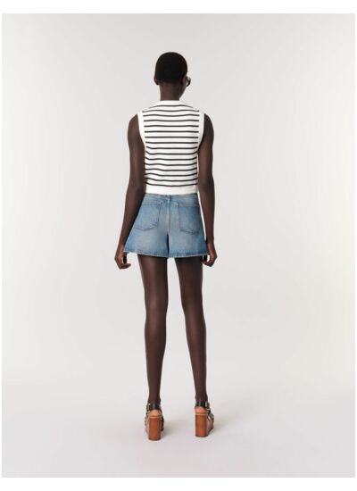 Ce cardigan sans manches à rayures Maje convient-il pour une tenue décontractée ou habillée ? Ce modèle polyvalent s’adapte parfaitement à un look casual avec un jean ou à une tenue plus sophistiquée en l’associant à une blouse et un pantalon tailleur. Son design épuré et ses rayures apportent une touche moderne et élégante.