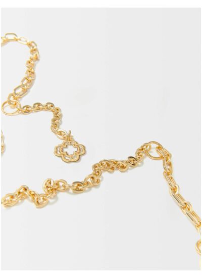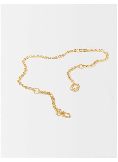 Illuminez vos silhouettes de saison avec cette ceinture chaîne en laiton recyclé. Résolument chic, elle dévoile un jeu de maillons et un fermoir orné d'un charm signature Clover.