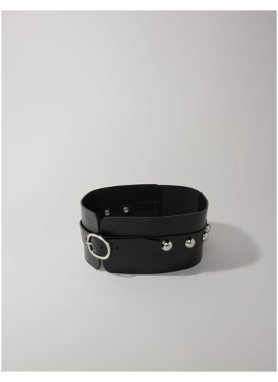 Ornée de détails cloutés, cette ceinture en cuir apporte une touche d'audace à votre allure. Élastiquée au dos et munie d'une sangle à boucle ajustable, glissez-la sur une robe vaporeuse ou une chemise structurée pour une silhouette affirmée.