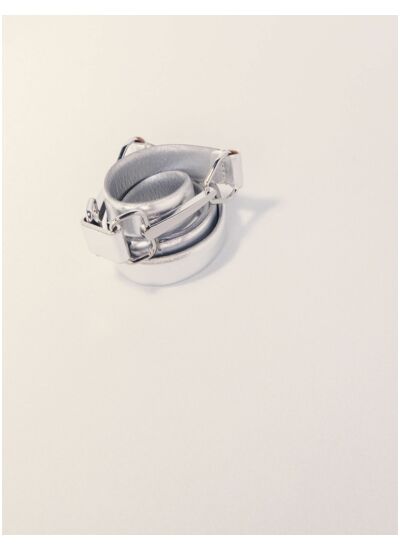 Confectionnée en cuir métallisé, cette ceinture s'attache à l'avant, dévoilant des mors reliés par un crochet pour une silhouette sophistiquée. Ajustable et coulissante au dos, elle se glisse aisément dans les passants d'un jean ou sur une robe vaporeuse pour marquer la taille avec élégance.