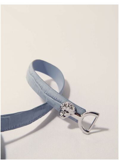 Confectionnée en cuir embossé façon crocodile, cette ceinture fine se pare d'une boucle à mors lion, de quoi apporter un supplément de caractère et d'élégance à toutes vos tenues.