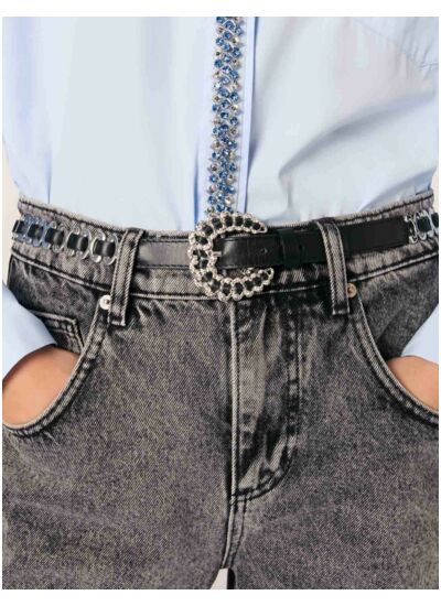 Quelle est la particularité de la ceinture MFACE00406 ? Cette ceinture associe une chaîne fine à une boucle ornée de bijoux, offrant un équilibre parfait entre élégance et modernité. Elle se distingue par son design raffiné qui sublime toutes les tenues, du casual au chic.