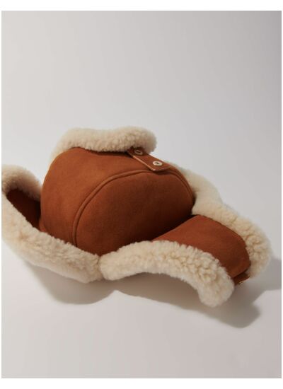 Enveloppez-vous de douceur avec cette chapka en shearling contrasté. Dotée d'un revers douillet et de sangles ajustables à boutons pression, elle vient réchauffer vos silhouettes de saison avec élégance.