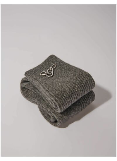 Sublimez votre allure avec ces chaussettes hautes revisitées avec audace. Confectionnées dans une maille côtelée et épaisse, elles se parent cette saison d'un détail signature : des bijoux mors Clover dorés délicatement apposés sur le haut.