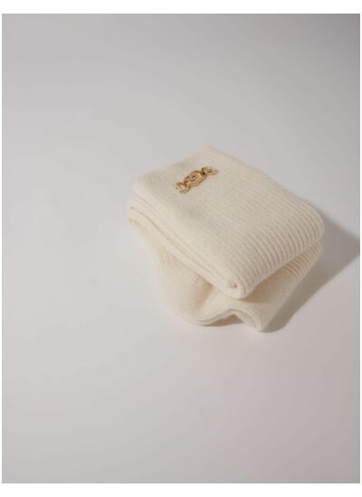 Sublimez votre allure avec ces chaussettes hautes revisitées avec audace. Confectionnées dans une maille côtelée, elles se parent cette saison d'un détail signature : des bijoux mors Clover dorés délicatement apposés sur le haut.