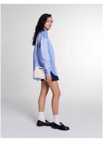 Cette chemise loose à rayures Maje convient-elle à toutes les morphologies ? Oui, sa coupe ample est pensée pour offrir confort et élégance, s’adaptant facilement à différentes silhouettes tout en apportant une touche moderne à votre tenue. De quel matériau est composée cette chemise ? La chemise est confectionnée dans un tissu de qualité, léger et respirant, idéal pour un porté agréable tout au long de la journée. Comment entretenir cette chemise pour préserver ses couleurs et sa forme ? Il est recommandé de suivre les instructions d’entretien indiquées sur l’étiquette, généralement un lavage à froid et un séchage à l’air libre pour garantir la durabilité des rayures et la tenue du tissu. Cette chemise peut-elle être portée en toutes saisons ? Sa matière et sa coupe la rendent polyvalente, adaptée aussi bien aux journées fraîches qu’aux soirées plus chaudes, à condition de l’associer avec des pièces complémentaires selon la saison. Comment intégrer cette chemise loose à rayures dans une tenue stylée ? Portez-la avec un jean slim ou un pantalon tailleur pour un look équilibré, ajoutez des accessoires minimalistes pour souligner son allure chic et contemporaine signée Maje.
