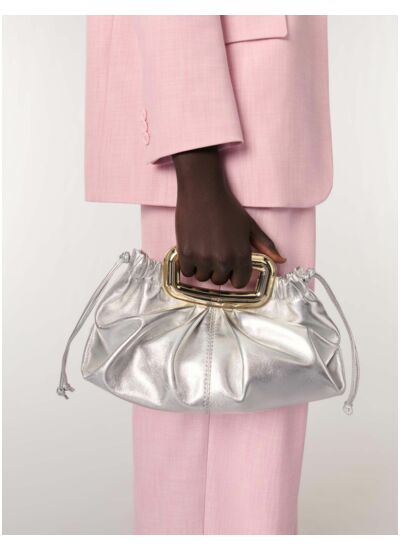 Le studio signe son nouveau must-have. Confectionnée en cuir métallisé argenté, cette pochette souple et froncée reprend la poignée iconique signée Maje, cette fois en métal aimanté. Ses lanières à nœuds et sa bandoulière ajustable et amovible offrent différents portés : à la main, à l'épaule ou en crossbody. À l'intérieur, une poche plaquée permet d'y glisser tous vos essentiels.