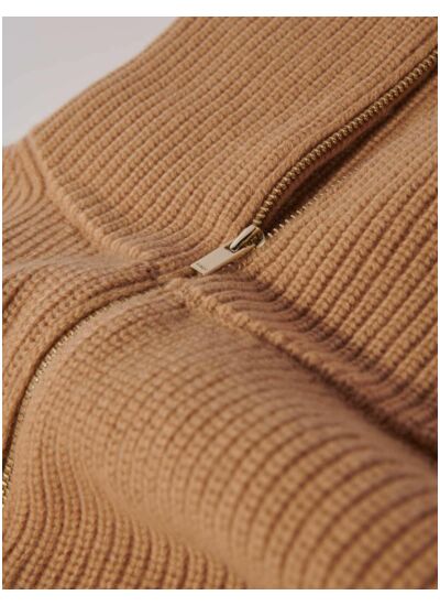Maje associe savoir-faire et tendances actuelles, offrant un col zippé en laine et cachemire qui allie qualité, style et fonctionnalité, répondant aux attentes des amateurs de mode exigeants.