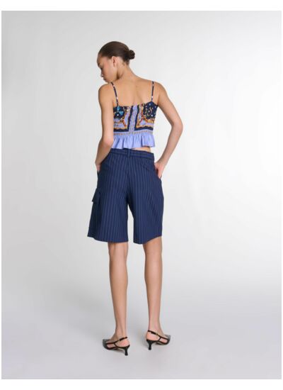 Il est conçu dans un tissu léger et confortable, idéal pour la saison estivale, avec une finition smockée qui assure une bonne tenue et un style affirmé.