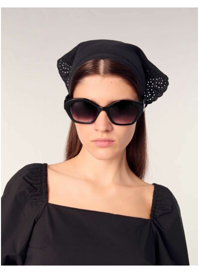 Véritable coup de cœur du studio , ce foulard triangle en coton est sublimé d'une délicate broderie anglaise. Des liens à nouer permettent de le porter en bandana, autour du cou ou comme accessoire de sac, pour un style résolument élégant.