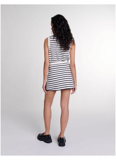 Cette jupe courte en maille à rayures est-elle confortable pour un usage quotidien ? Oui, sa maille souple assure un confort optimal tout au long de la journée, tout en offrant une silhouette ajustée et élégante adaptée à un port quotidien.