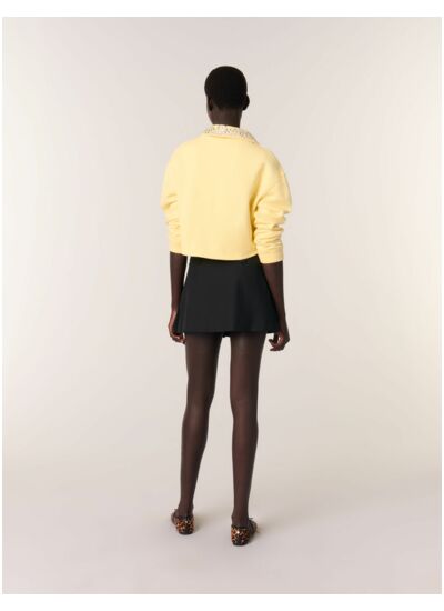 Comment porter la jupe courte plissée Maje pour un look tendance ? Associez-la à un top ajusté ou un pull léger pour équilibrer le volume, complétez avec des bottines ou des escarpins pour une silhouette chic et dynamique.