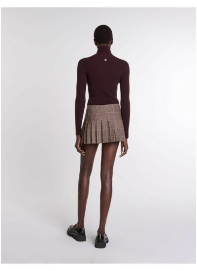 Chic et intemporelle, cette jupe short courte revisite le motif iconique à carreaux Prince de Galles. Sa coupe courte et évasée est sublimée par deux boucles latérales et un délicat jeu de plis, lui conférant une touche de caractère.