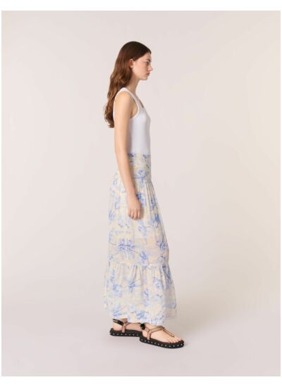 Quelle est la matière de la jupe longue imprimé floral Maje ? La jupe MFPJU01435 est conçue dans des tissus de qualité sélectionnés par Maje pour assurer confort et tenue, adaptés à un usage quotidien tout en valorisant l’imprimé floral.