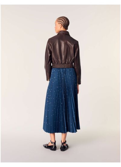 Cette jupe longue plissée à studs Maje est-elle adaptée à un style formel ? Oui, sa coupe élégante et les détails en studs apportent une touche sophistiquée qui convient parfaitement à des occasions formelles ou professionnelles tout en restant moderne.