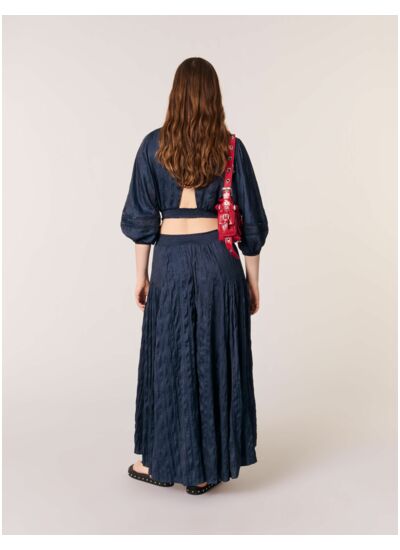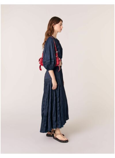 Comment choisir la bonne taille pour cette jupe Maje ? Référez-vous au guide des tailles disponible sur notre site pour un ajustement précis. La coupe longue et fluide offre une certaine tolérance, mais il est important de vérifier vos mensurations pour garantir un tombé parfait.