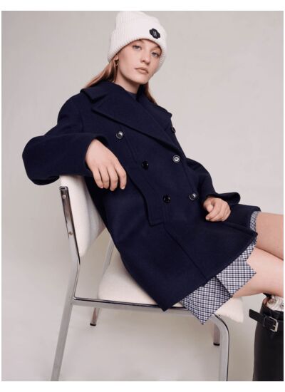Comment entretenir le manteau caban Maje MFPOU01078 ? Pour préserver la qualité du tissu et la coupe, il est recommandé de suivre les instructions d’entretien fournies, généralement un nettoyage professionnel pour maintenir son aspect neuf.