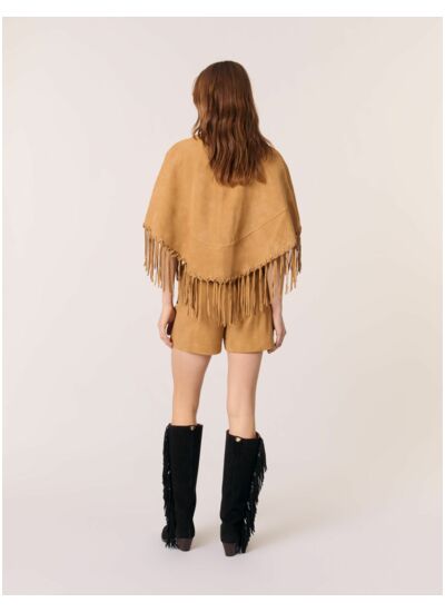 - Manteau court effet cape en cuir suédé
