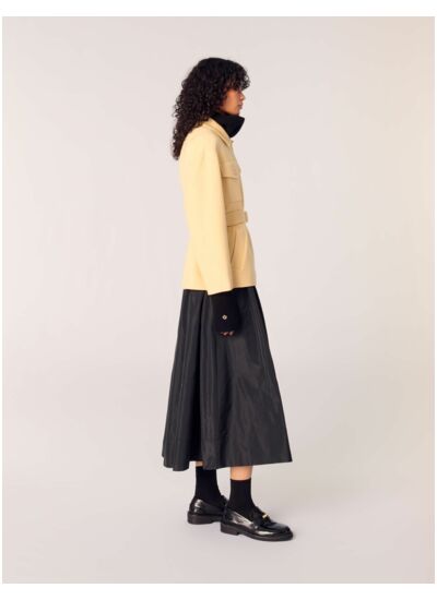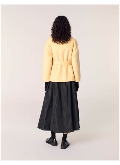 Ce manteau est-il adapté aux températures hivernales ? Ce manteau court double face Maje offre une bonne isolation grâce à ses matériaux de qualité, idéal pour les saisons froides sans être trop volumineux. Son design ceinturé permet d’ajuster la coupe pour maximiser la chaleur.
