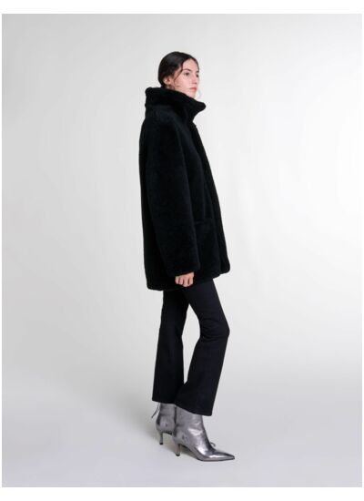 Ce manteau réversible, en mouton retourné ou en cuir fourré, vous enveloppe de douceur et de chaleur. Muni de deux larges poches plaquées, il se distingue par son col montant et sa fermeture boutonnée pour une silhouette chic et structurée.
