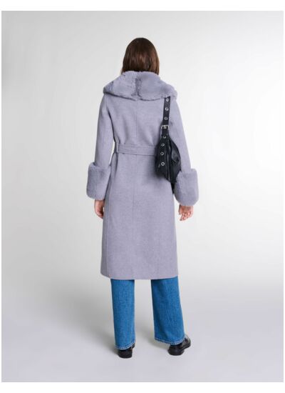 Noué pour une allure sophistiquée ou ouvert pour un style plus décontracté, ce manteau long vous enveloppe de chaleur et de douceur. Muni de deux poches passepoilées, il dévoile un large col et des poignets en fourrure pour apporter une touche d'élégance à votre look.