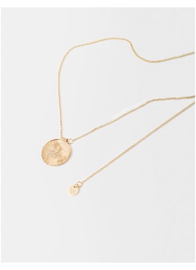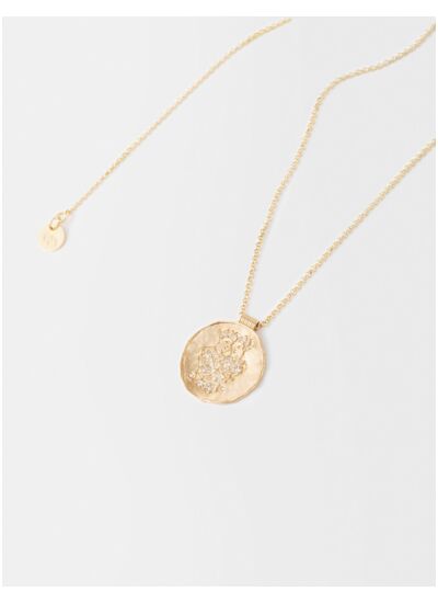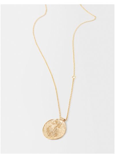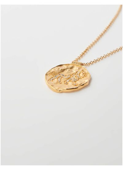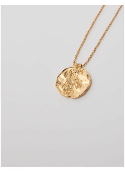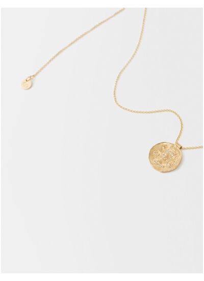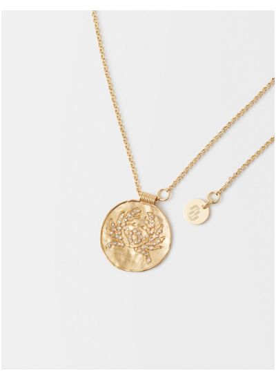 Collier avec une médaille signe astrologique parsemée de strass. Un bijou authentique et unique, pour un cadeau personnalisé. Il vous sera livré dans sa boîte bijoux.Trois anneaux de réglage. Longueur : 67,5 cm Collier signe astrologique Médaille dorée Parsemé de strass Il sera accompagné d'une boite bijoux