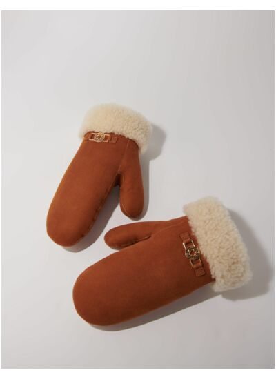 Sublimées par la couleur emblématique de la saison, ces moufles dévoilent un jeu de matières contrastées. Les bords retournés, réhaussés d'une peau lainée shearling, enveloppent vos mains de douceur et de chaleur.