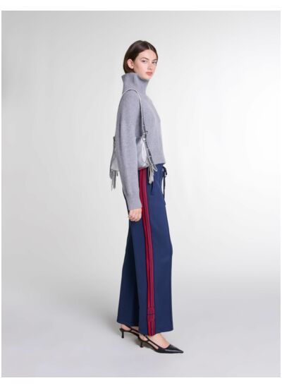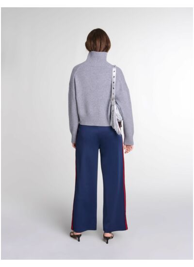 Quelles sont les caractéristiques des bandes sur ce pantalon ? Les bandes apportent une touche graphique et moderne qui structure la silhouette tout en soulignant la qualité du design Maje, sans compromettre le confort.