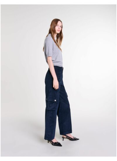 Ce pantalon cargo en velours Maje est-il adapté à un usage quotidien ? Oui, son tissu en velours allie confort et élégance, idéal pour un look décontracté mais soigné au quotidien. Sa coupe cargo ajoute une touche moderne tout en restant pratique.
