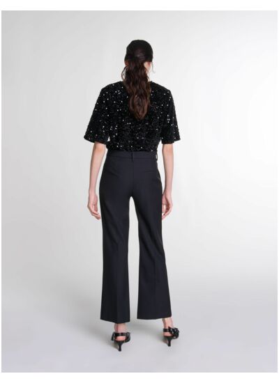 Comment choisir la bonne taille pour ce pantalon ? Pour un ajustement parfait, référez-vous au guide des tailles Maje disponible sur notre site. Ce pantalon de tailleur est conçu pour épouser la silhouette sans être trop serré, offrant confort et maintien tout au long de la journée.