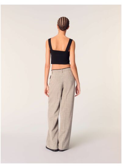 Avec sa forme droite très élégante et son effet trompe l'œil à la taille, ce pantalon droit muni d'un pli marqué offre une silhouette effortless et chic à la fois. Ajoutez un top court pour accentuer la taille, et complétez votre look avec des sandales en cuir.