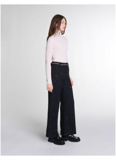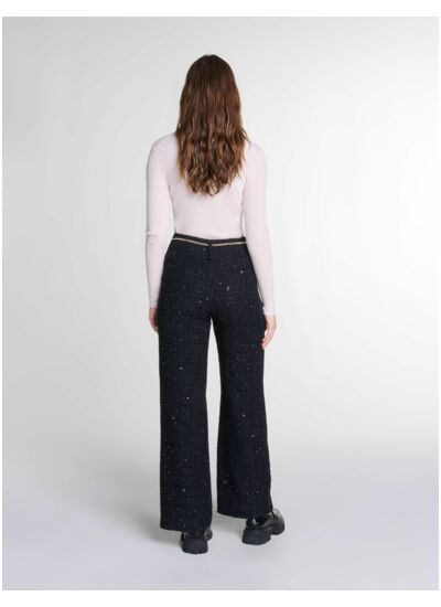 Ce pantalon en tweed à sequins est-il adapté pour une tenue de soirée ? Ce pantalon allie l’élégance du tweed à la brillance des sequins, offrant un look sophistiqué parfait pour une soirée ou un événement chic. Sa coupe et ses détails raffinés en font une pièce maîtresse pour se démarquer avec style.