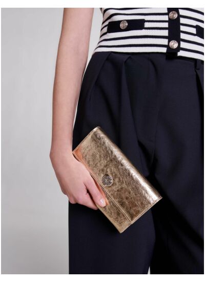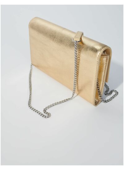 - Pochette en cuir métallisé doré
